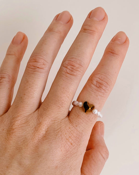 keari - LOVIE Perlenring mit Edelstahlherz gold oder silber