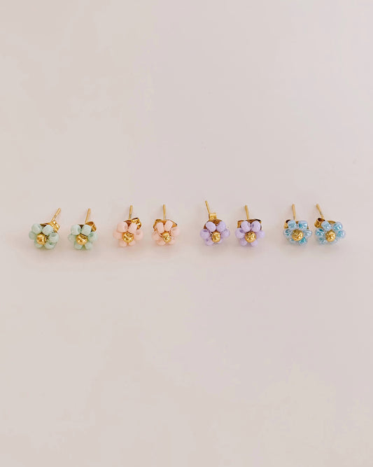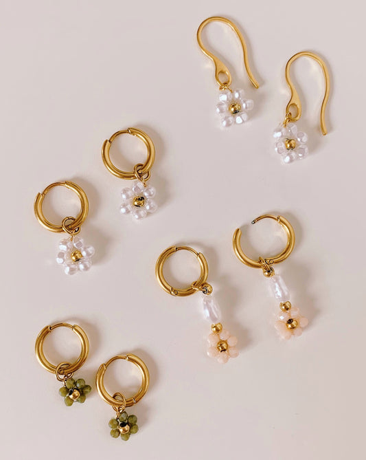 keari - Creolen mit Gänseblümchen aus Facetten- und Imitationsperlen